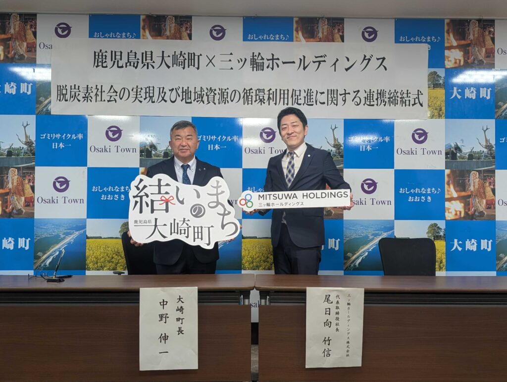 鹿児島県大崎町と三ッ輪ホールディングスが「脱炭素社会の実現及び地域資源の循環利用促進に関する連携協定」を締結